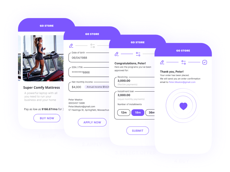 Get up and running quickly with rapid integrations and accelerate time-to-market with a swift onboarding process that connects multiple lenders to every point of sale through our APIs, SDKs, and ecommerce extensions.